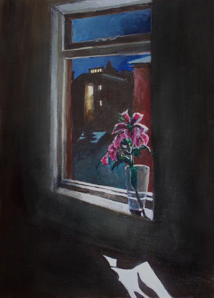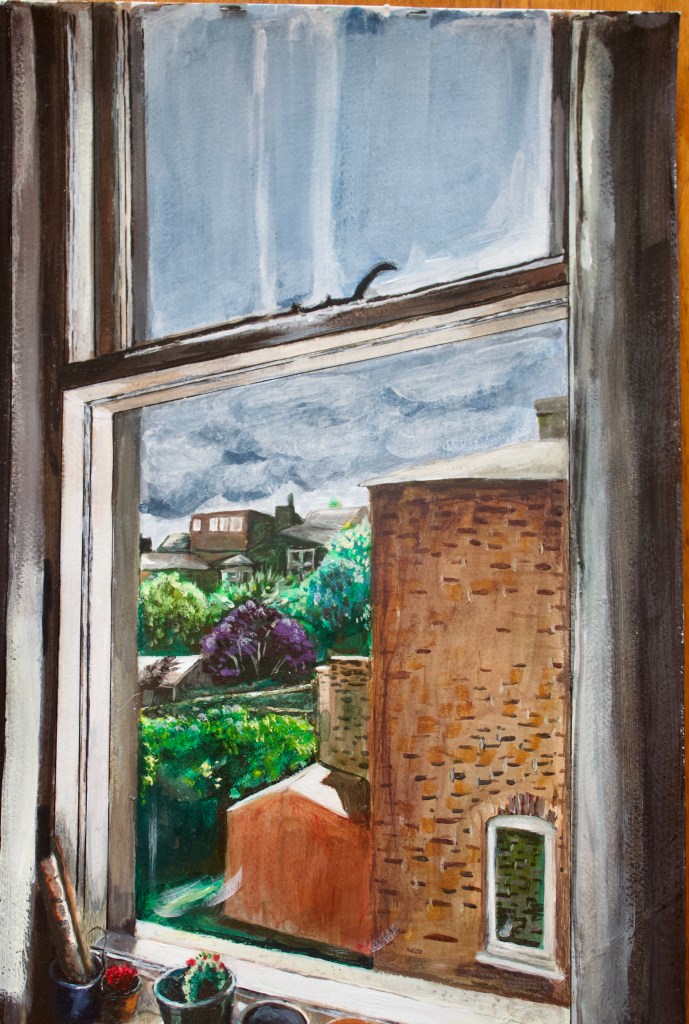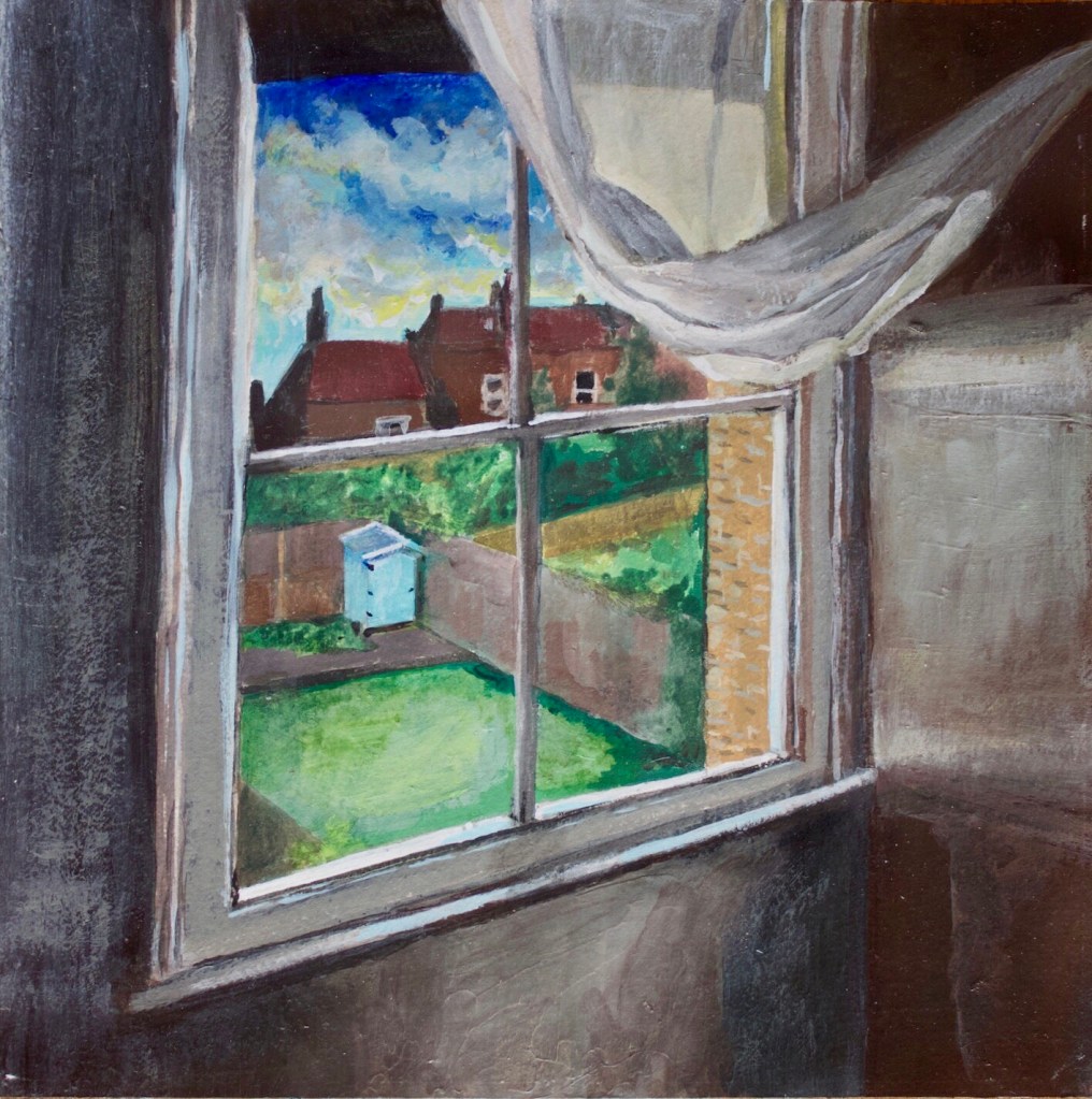 Windows have in my opinion a great metaphorical and poetical symbolism. During lockdown that became even more so. During that time I painted every view out of every window in my house and window related images. Here are some.